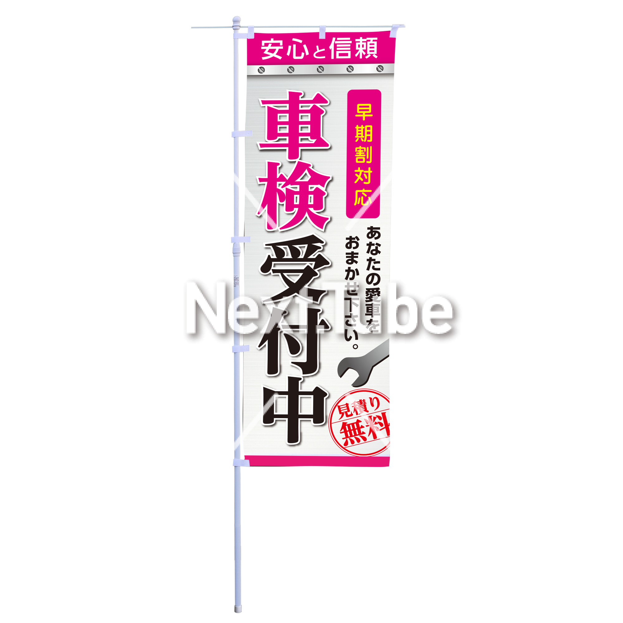 標準のぼり 600×1800mm 車検受付中 1125-10028
